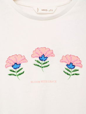 Kids' Grace Cotton Short Sleeved Floral T-Shirt, Natural White