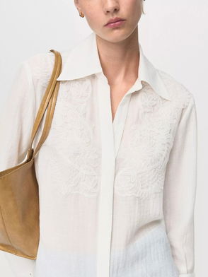 Melanie Textured Embroidered Shirt, Natural White