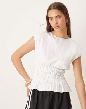 Cotton Mix Fine Knit Peplum Cami Top In White