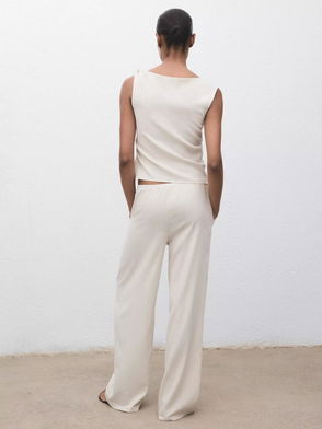 Co-ord Scribble Print Linen Mix Wide Leg Trouser In White