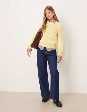 Cable Knit Crew Neck Jumper In Yellow