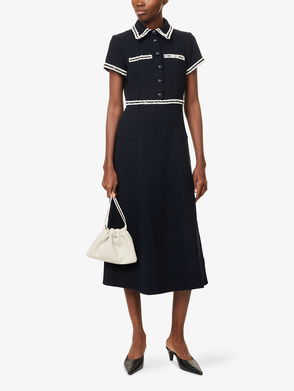 Contrast-Trim Bouclé Stretch-Knit Midi Dress