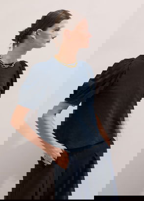 Travel Tailoring Balloon Sleeve Swing Top Navy