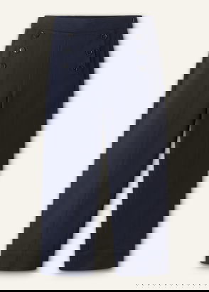 Button Front Straight Crop Trouser Navy