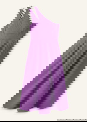 Cotton Sateen One Shoulder Midi Dress Summer Purple
