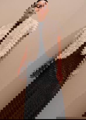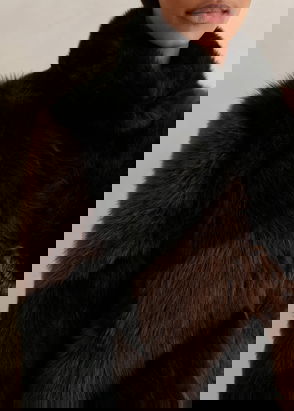 Luxe Shearling Leather Mix Swing Coat Chocolate