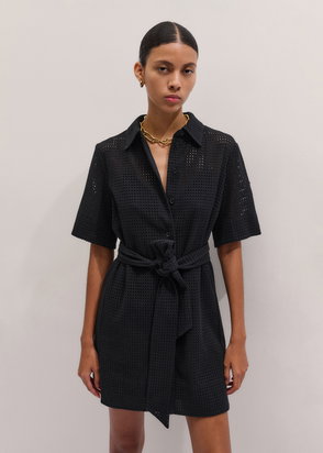 Broderie Anglaise Short Shirt Dress With Belt + Slip