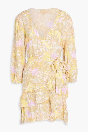 Ruffled Floral-print Mousseline Mini Wrap Dress
