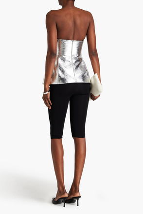 Blanche Strapless Metallic Crinkled Leather Buster Top