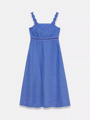 Scallop Trim Pure Linen Midi Dress