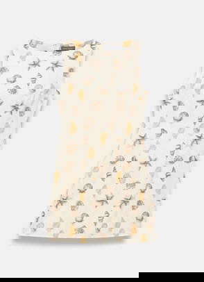Neutral Cotton Shell Print Mini Dress