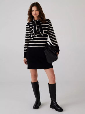 Stripe Knit Tie Neck Mini Dress, Black/Multi