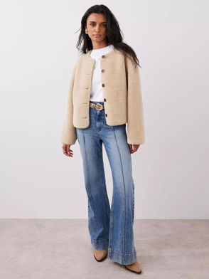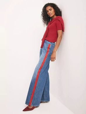 Mid Rise Striped Wide Leg Cotton Denim Jeans