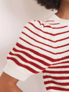 Striped Short Puff Sleeve Knit Top, Red/Multi