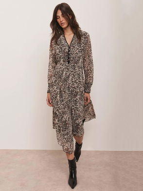 Animal Print Asymmetric Midi Dress, Brown/Multi