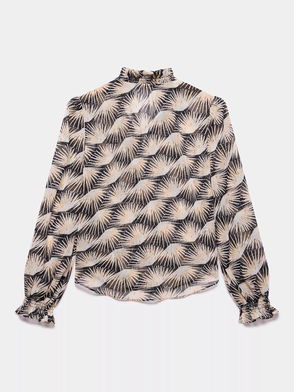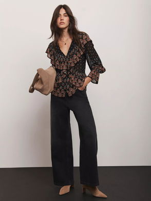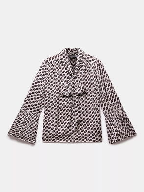 Abstract Paisley Ruffle Blouse, Black/Multi