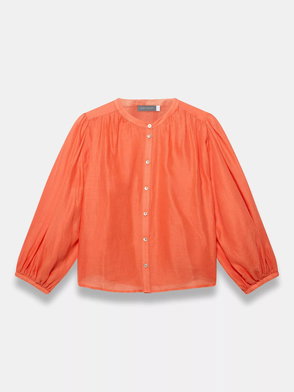 Military Trim Pure Linen Top, Orange