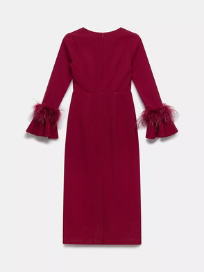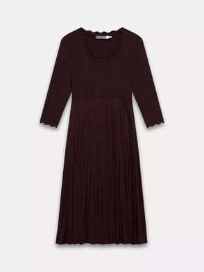 Scallop Scoop Neck Pleated Trim Midi Dress
