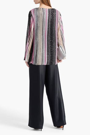 Metallic Crochet-Knit Wool-Blend Flared Pants