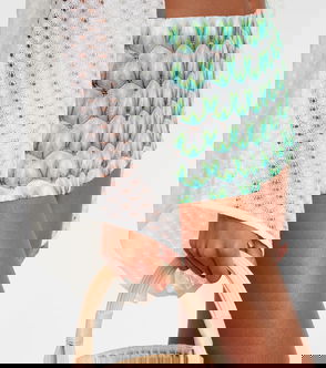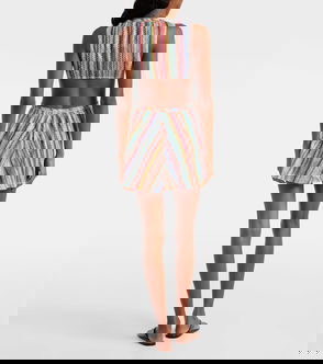 Metallic Crochet-Knit Mini Turtleneck Dress