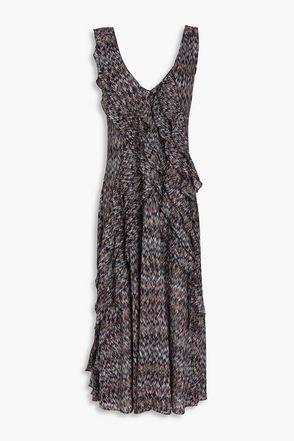 Metallic Crochet-knit Cotton-blend Shirt Dress