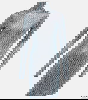 Metallic Crochet-Knit Mini Turtleneck Dress