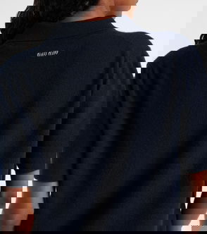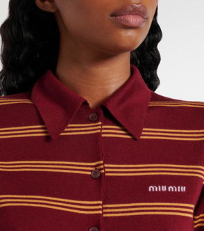 Striped-Collared Knitted-Logo Cashmere Cardigan