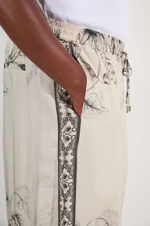 Plus Size Viscose Linen Scenic Placed Print Woven Wide Leg Trousers