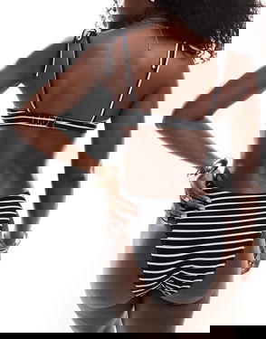 Abercrombie & Fitch Co-ord Tie Strap Bikini Top In Black And White Stripe