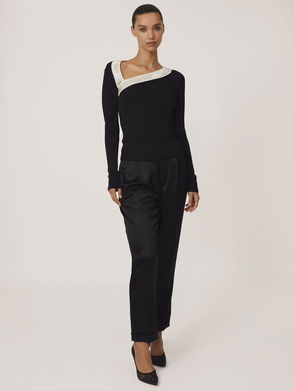 Bead-Detail Asymmetric Knit Jumper In Black/White