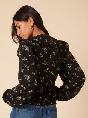 Plus Edie Balloon Sleeve Blouse In Mono Gingham