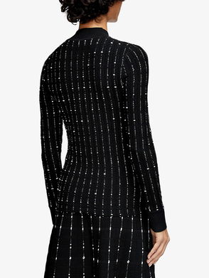 Pure Wool Jersey Second Skin Long Sleeve Top In Mono Stripes