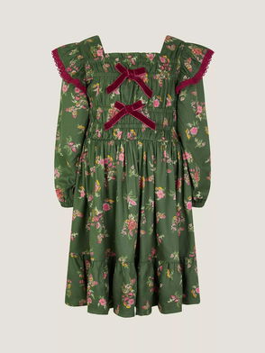 Kids' Long Sleeved Butterfly And Floral Print Dress, Green