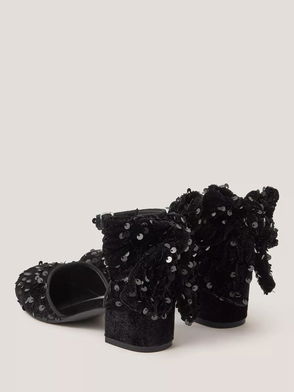 Kids' Velvet Block Heel Sequin Bow Shoes