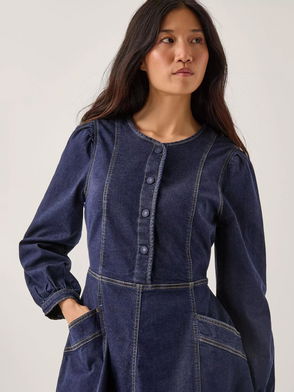 Isadora Cotton Blend Long Sleeve Round Neck Seamed Dress