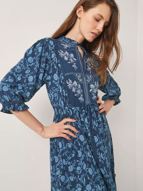 Botanical Embroidered Midi Dress