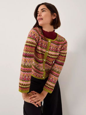Fiona Fair Isle Cardigan, Pink/Multi