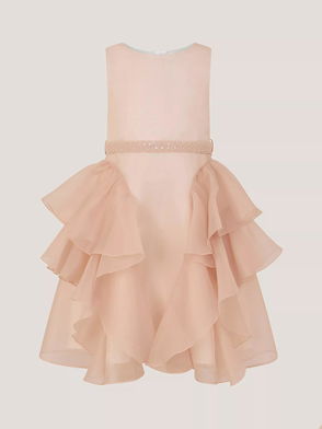 Kids' Tulle Sleeveless Ruffle Dress, Dusky Pink