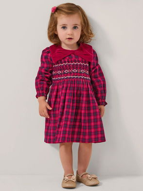 Baby Scallop Estella Short Sleeved Dress, Burgundy