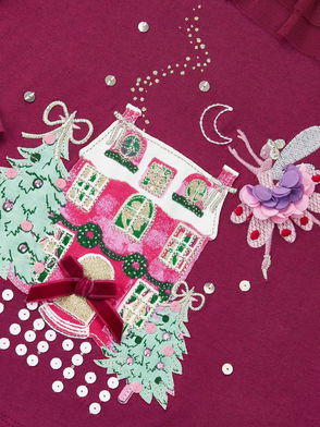 Kids' Cotton Christmas House Long Sleeve Top, Burgundy