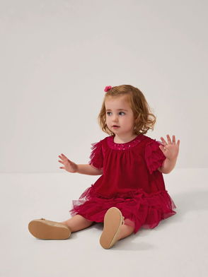 Baby Alexandra Velvet Ruffle Party Dress, Red
