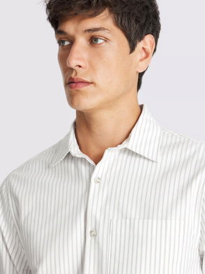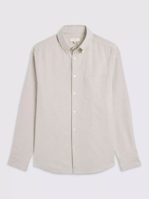 Cotton Regular Fit Stripe Textured Oxford Weave Shirt, Beige