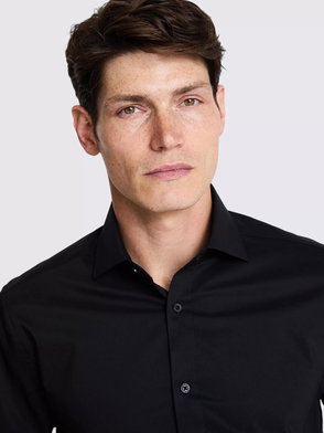 Tailored Fit Cotton Blend Double Cuff Stretch Shirt, Black