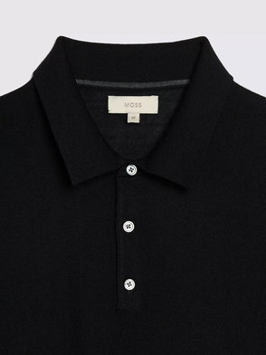 Merino Wool Blend Regular Fit Long Sleeve Polo Shirt