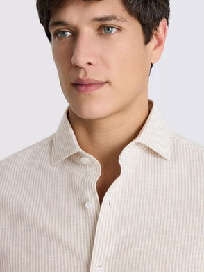 Linen-Cotton Narrow Stripe Shirt, Neutral