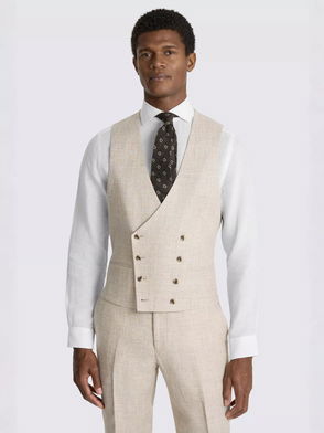 Linen Slim Doubled Breasted Tailored Waistcoat, Neutral