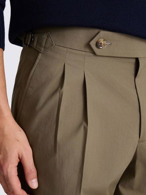 Cotton Rich Pleated Tapered Trousers, Taupe
