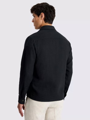 Cotton Blend Regular Fit Waffle Textured Overshirt, Blue
