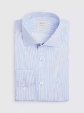 Cotton Slim Fit Stripe Shirt, Sky Blue/White