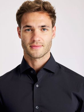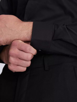 Cotton Blend Tailored Fit Double Cuffed Shirt, Black